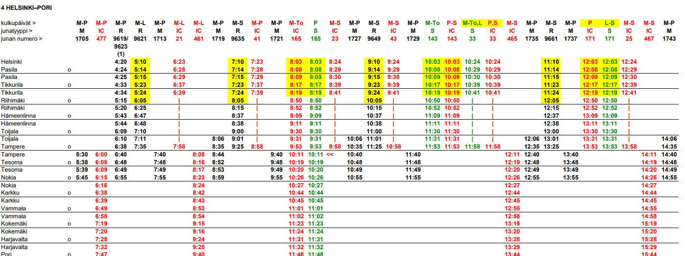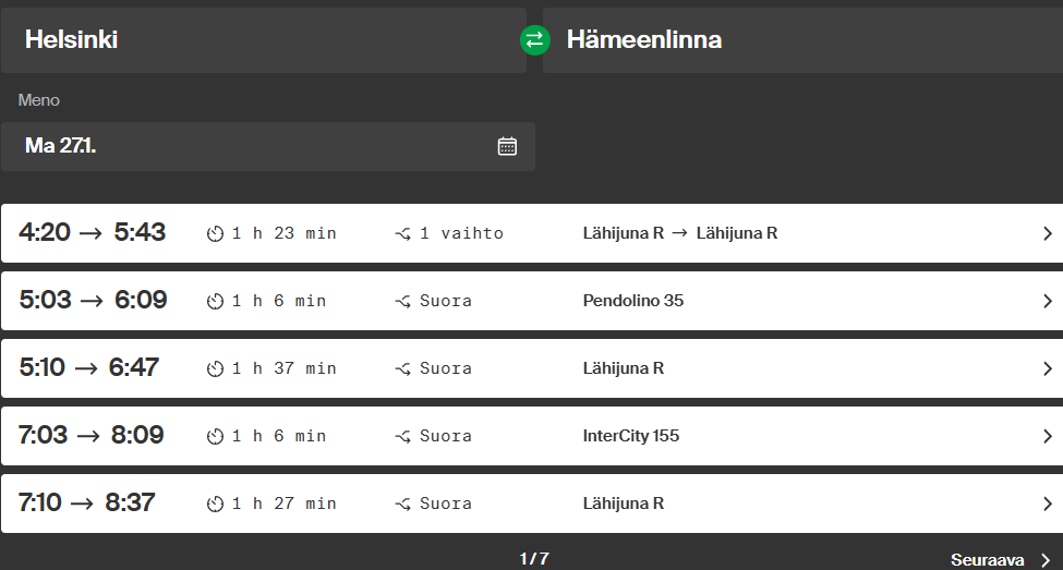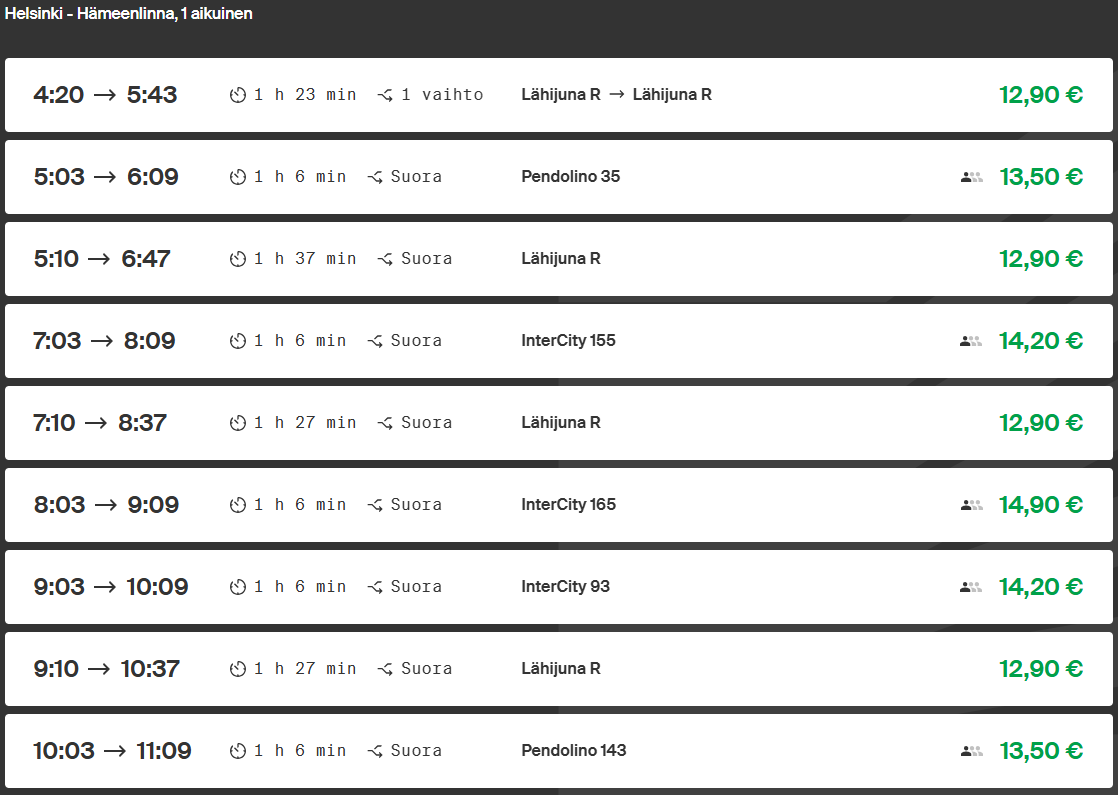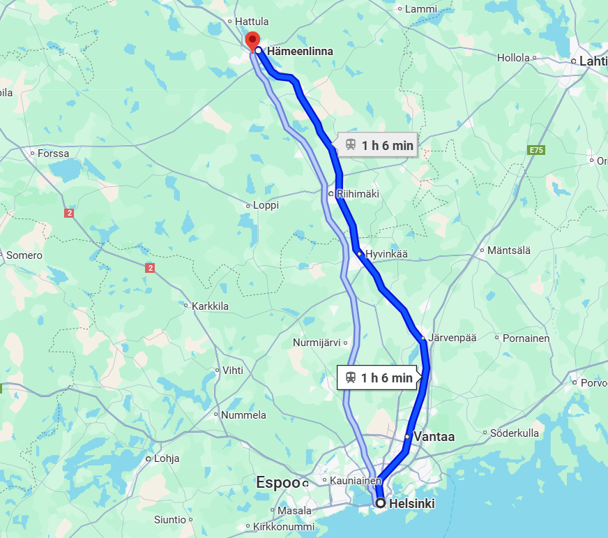 Helsingin – Hämeenlinnaan-reitin aikataulut