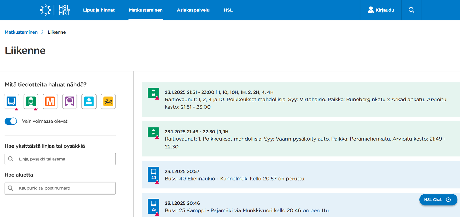 | 30.4.2025 | Vappuaattona on perjantailiikenne ja lisäliikennettä. Metro ja Kehäradan lähijunat liikennöivät normaalisti. |