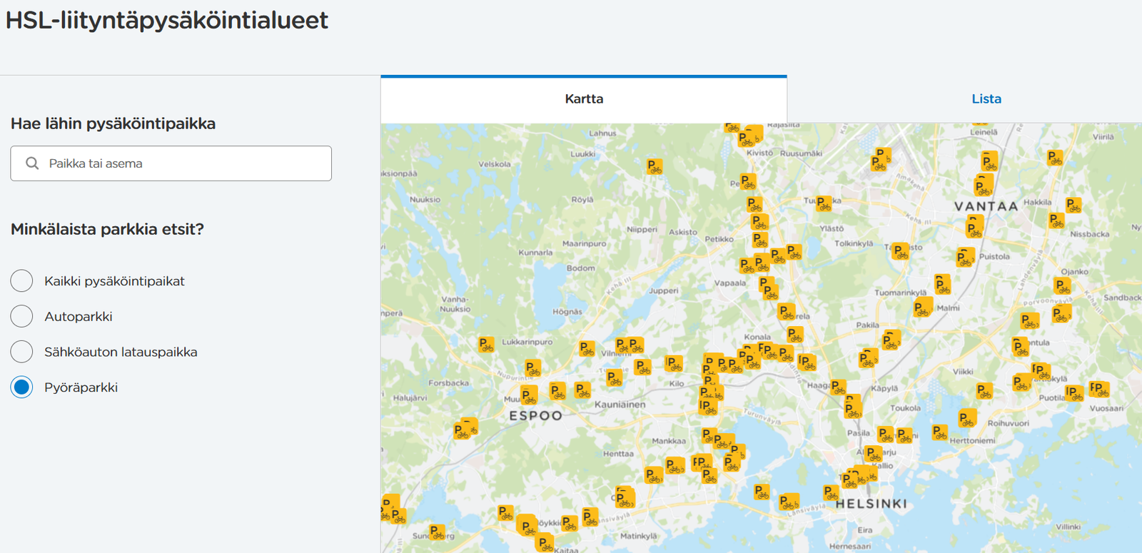 • Löydät kartalta pyöräpysäköintipaikkojen sijainnit ja parhaat reitit.