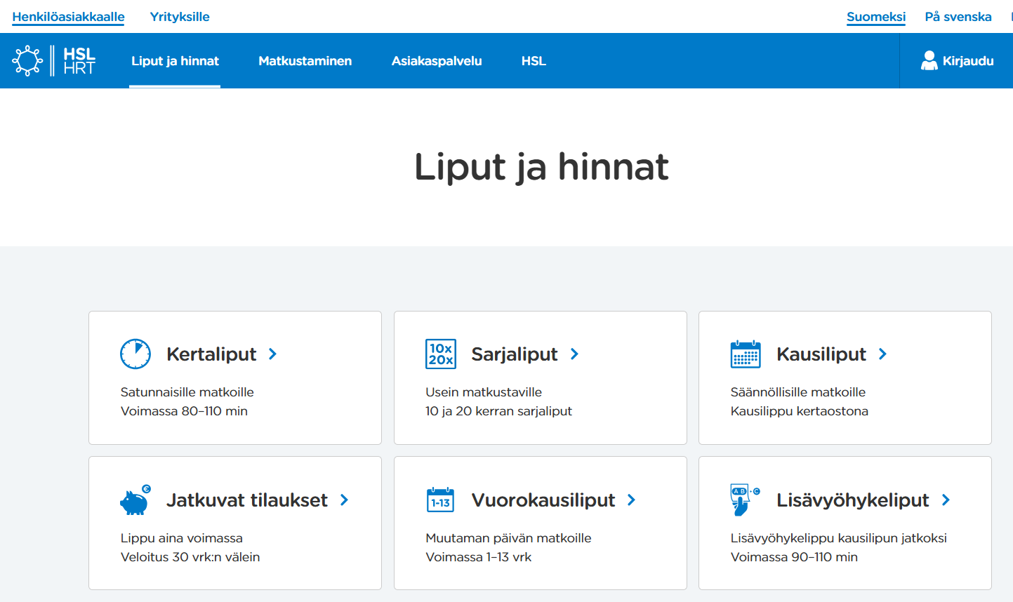 • HSL:n vuorokausi- tai kertalippu