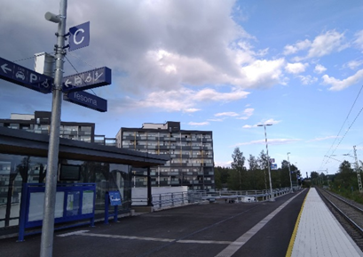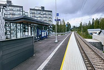 - Digitaaliset näytöt, joilla näytetään juna- ja bussiaikataulut ja yhteydet.