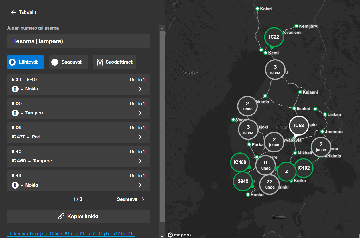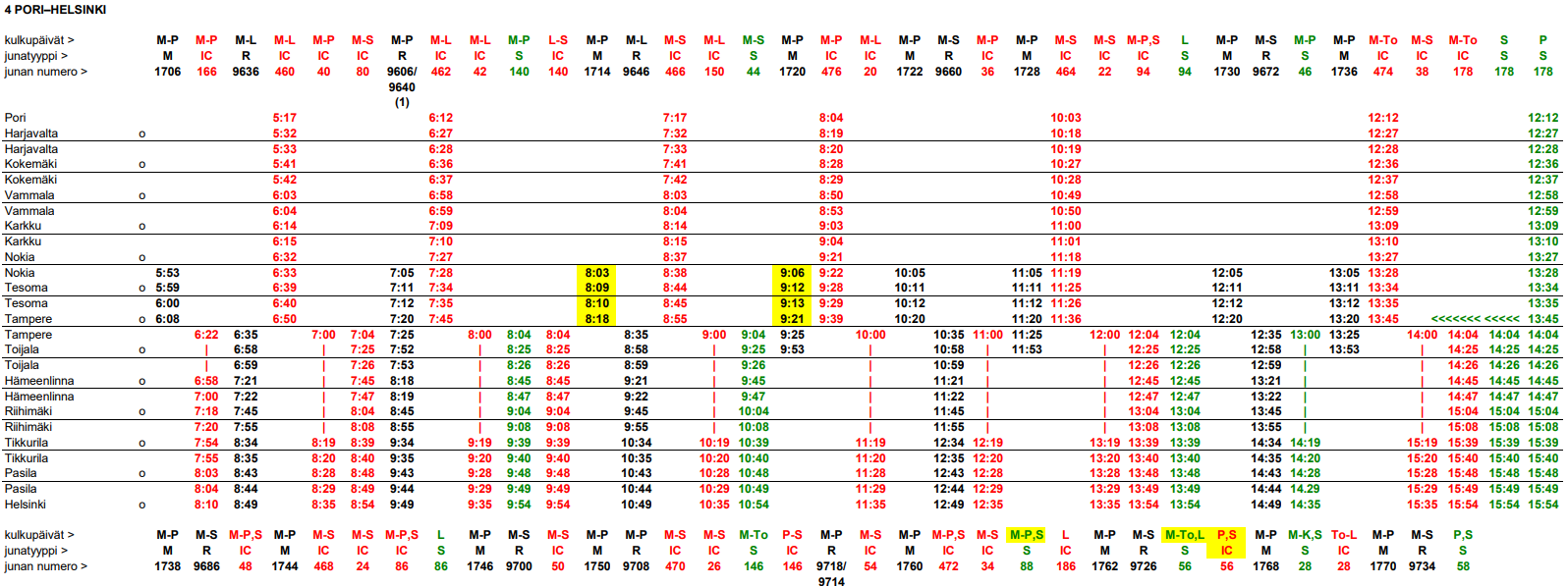 Junien lähtöjen ja saapumisten tarkistaminen VR:n Radalla-asemalla sekä muissa vastaavissa sovelluksissa on yksinkertainen ja tehokas prosessi. Matkustajat voivat tarkistaa päivitetyt aikataulut reaaliajassa annettujen linkkien kautta, jotka ohjaavat virallisille alustoille, kuten VR:n verkkosivuille tai yhteensopiviin mobiilisovelluksiin. Lisäksi eri puolilla asemaa strategisesti sijoitetut infonäytöt antavat selkeät tiedot junien lähdöistä ja saapumisista, mukaan lukien mahdolliset myöhästymiset tai aikataulumuutokset. Järjestelmä varmistaa, että käyttäjillä on aina tarkat ja helposti saatavilla olevat tiedot.