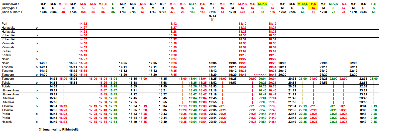 Kaukoliikenne: Helsinki-Tampere-Pori -reitin junat.
